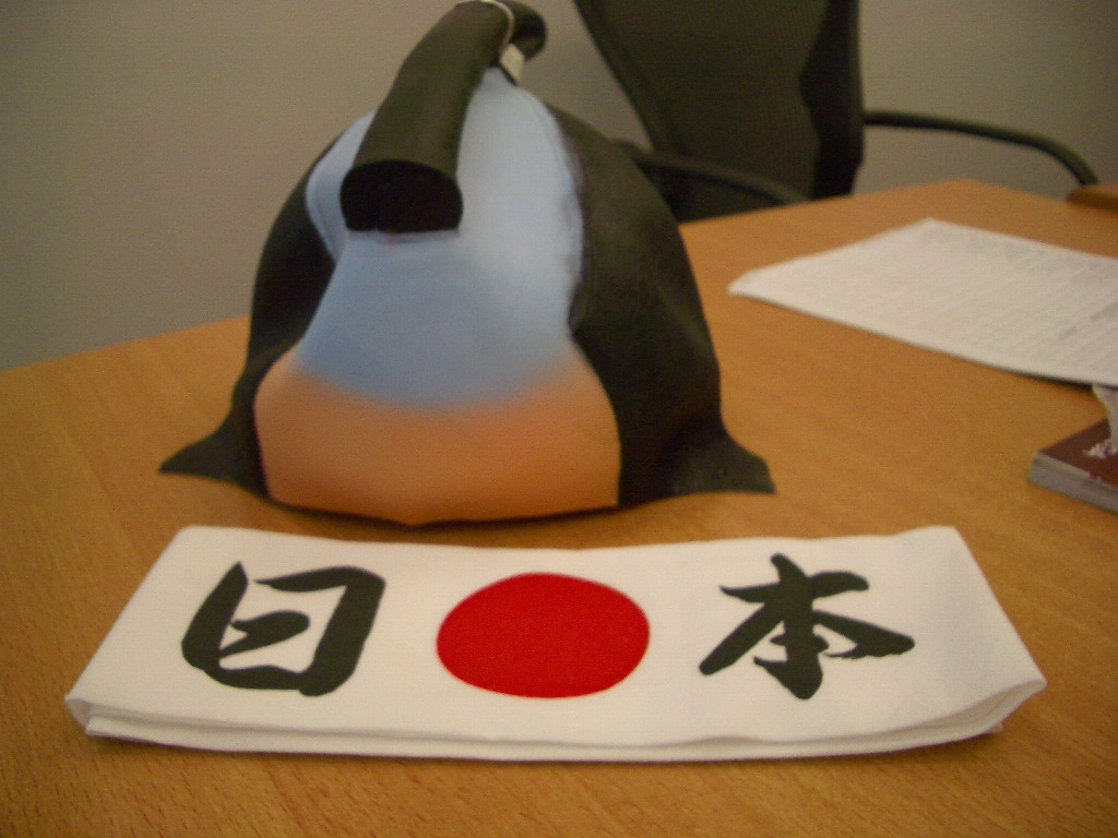 ←これが禁断の『ちょんまげ&ハチマキ』グッツ!!お礼のメールをすると、『すみません 神風というはちまきがなくて』 と言われた。神風のはちまきは、いくらなんでもまずいだろう。