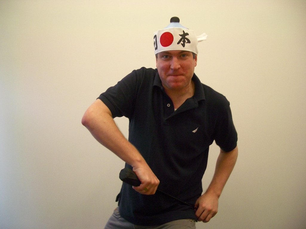 まあいいかとダンボールの中をチェックしていると。ちょんまげと、日の丸のハチマキがでてきた。さっそくカナダ兄弟に渡すと大喜びだ!ジョンはカツラがわりだ!ジョンのハチマキは特攻隊みたいで、なぜか似合っているから不思議だ。