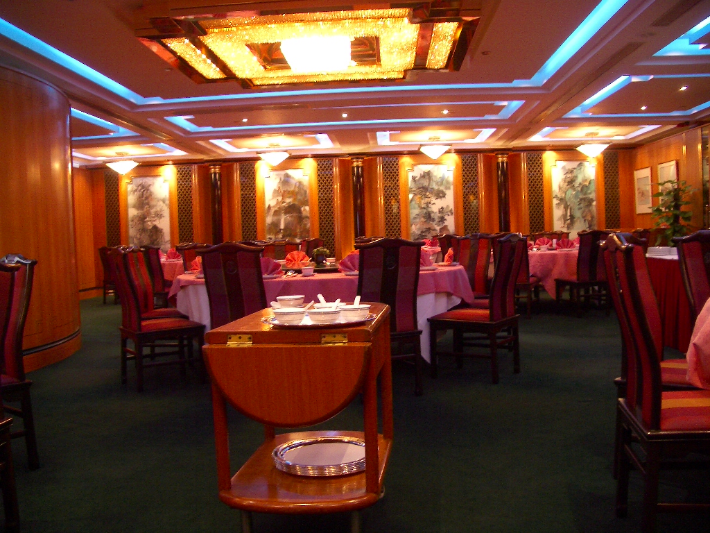 ここでは、たびたび結婚式も行われるようで、内装も豪華だった。土曜日ということもあって、中国人の家族連れがたくさん来ていた。しかし、10人くらいのグループがあちこちで円卓を囲んで食事している。ぴーちくぱーちくうるさかった。