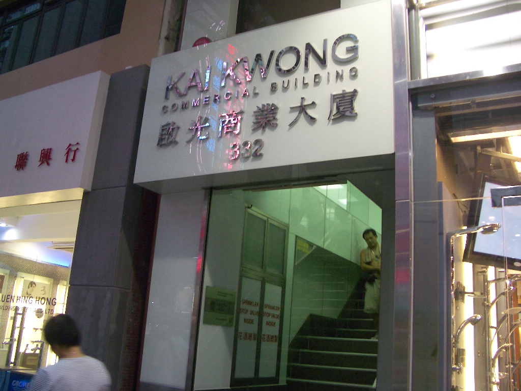 あたりは、トイレやバスの販売をしている店がいっぱい並んでいる。Kai Kwong という小さなビルの15Fのエレベーターを降りて左側の小さな一室にあった。