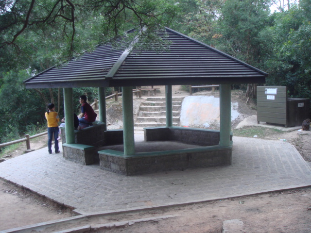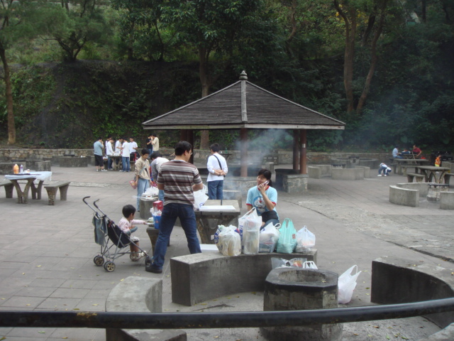 ダムの左側を直進するとマクリホーストレイル(麥理浩徑)の標距柱M125が出てくる。その200メートルくらい先の左側に大きなバーベキューエリアがある。天気もよかったので多数のグループがバーベキューで盛り上がっていた。ここには、比較的綺麗なトイレもあるので立ち寄っておこう。