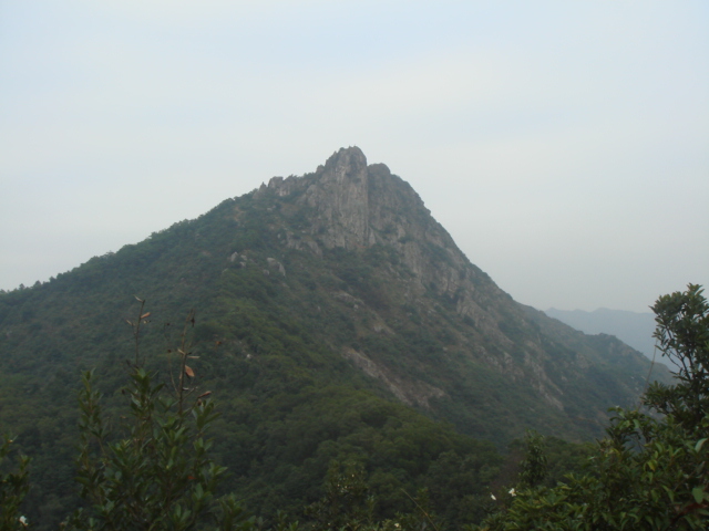 石段を下ると、休憩所に到着した。この先には、獅子山(写真左)があるが、マクロホースは、その山の左側面にあり山には登らない。もちろん、獅子山に登ることも出来るのだが、時間がかなり遅くなっていたので今回はパスした。