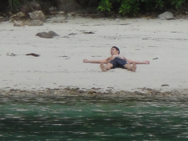 泳いで陸地に上陸、そのまま大の字で休憩、、、よく見ると、