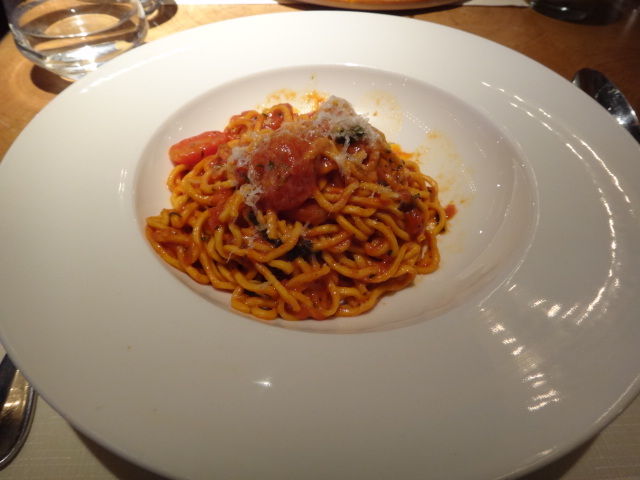 私はトマトソースベースのパスタを注文した。