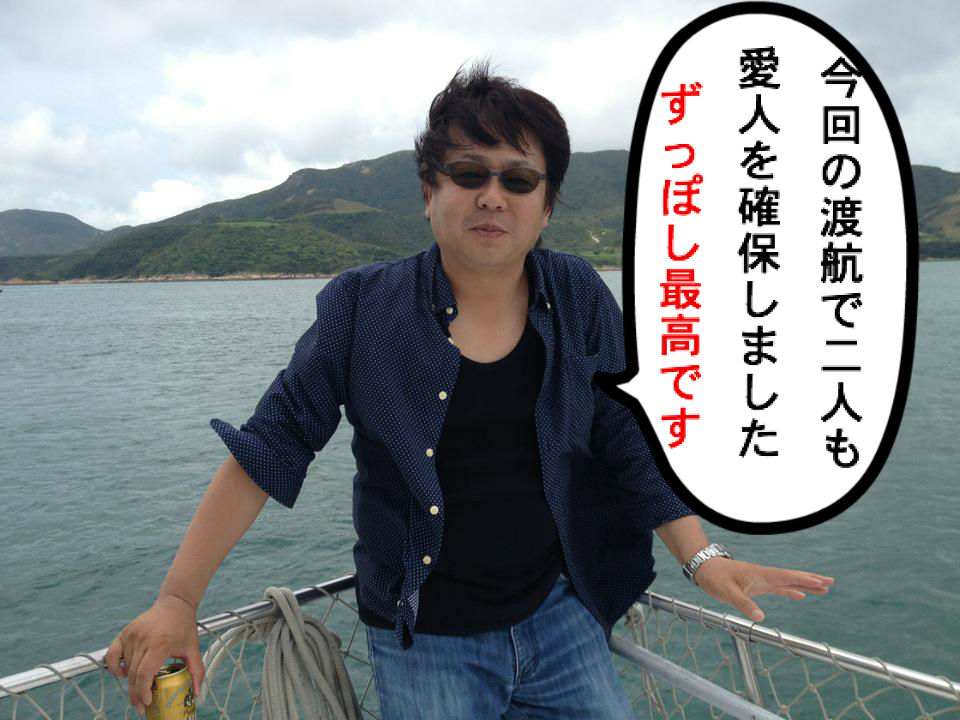 今回、香港移住を決断したタンク将軍が、貸切ボートパーティに参加した。