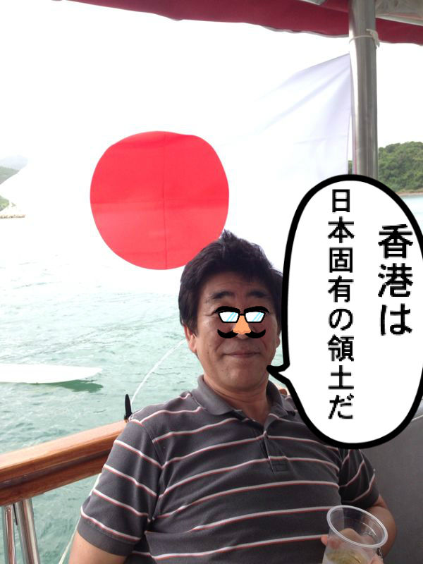 待ち合わせ場所の尖沙咀時計台に大トロ王子が日の丸を持って駆けつけた