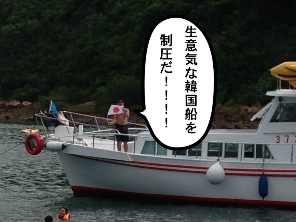 我々の日の丸を見た隣の韓国船が