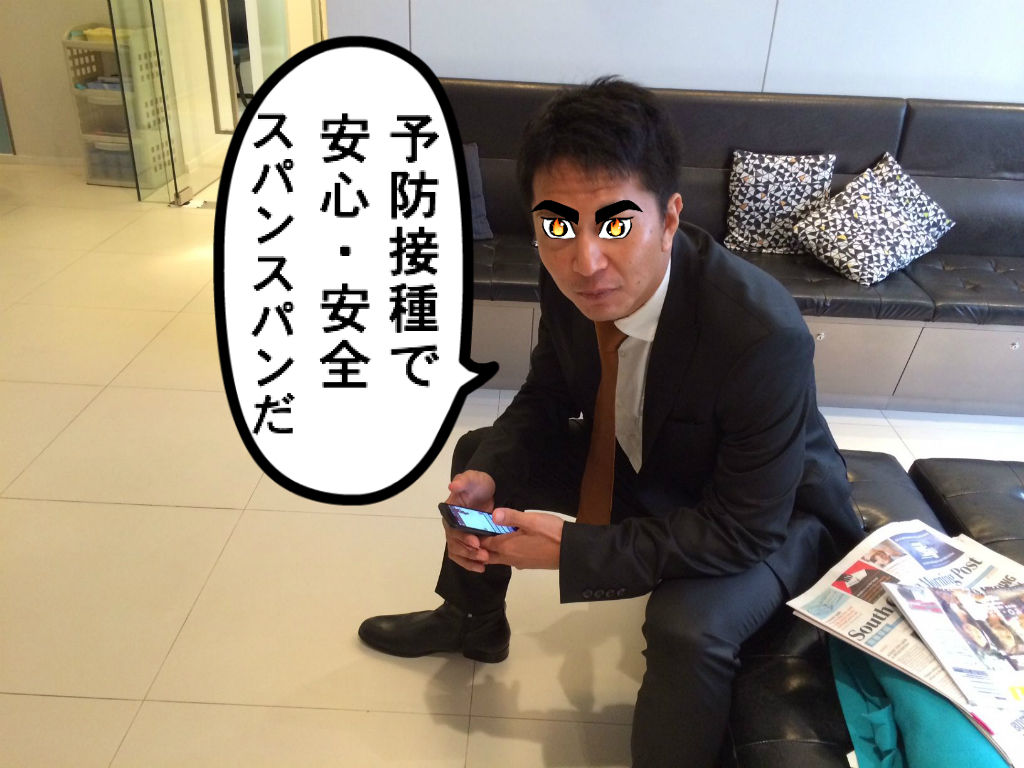 待つこと10分、、注射はすぐ終了した。。。料金は350HKドル