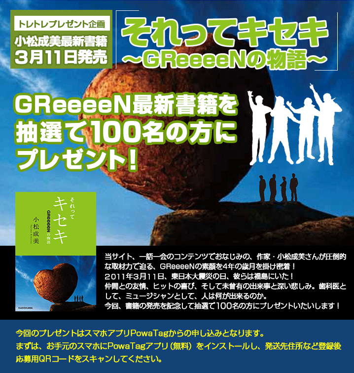 小松成美最新書籍 それって奇跡〜GReeeeMの物語〜プレゼント!