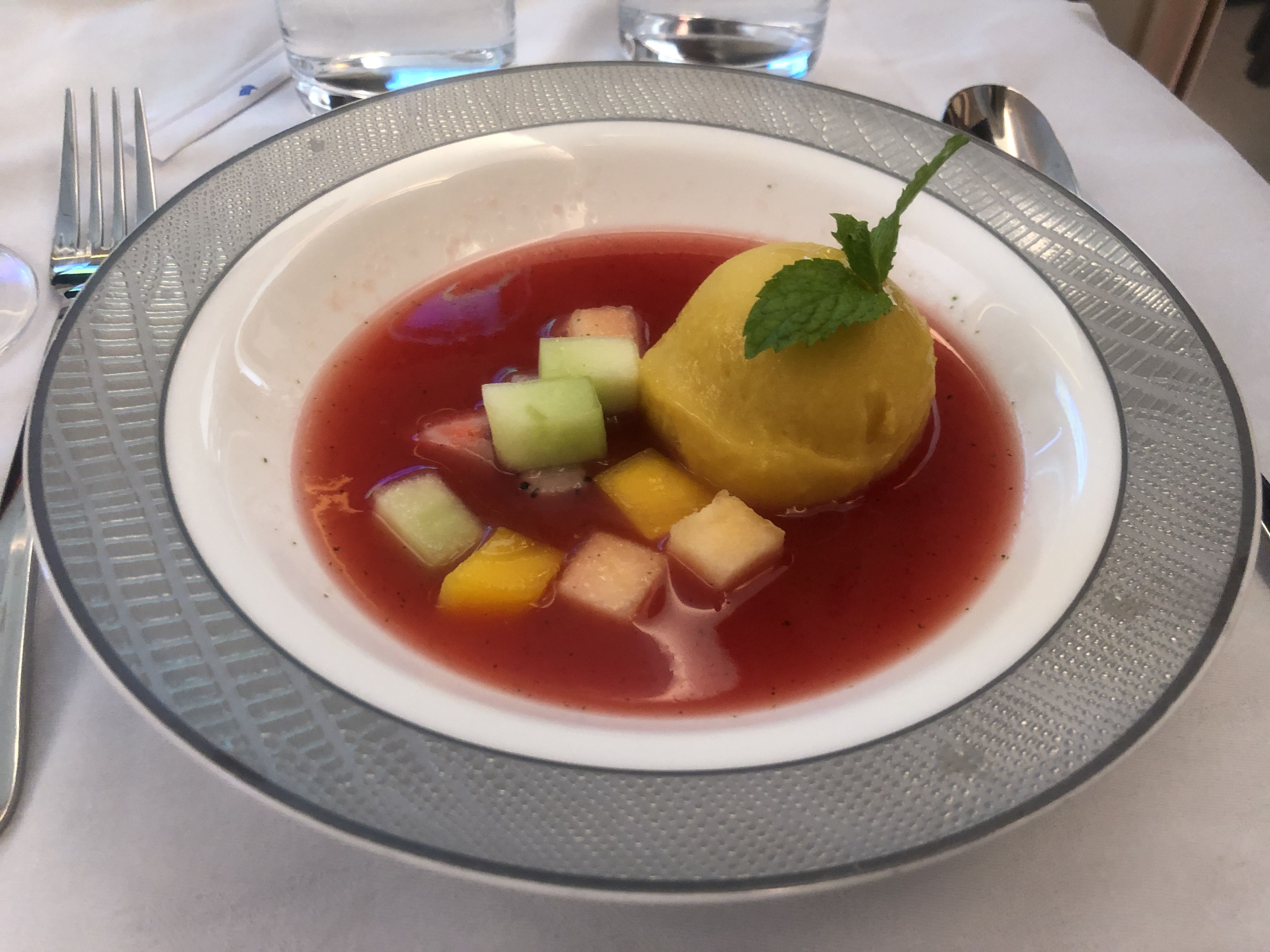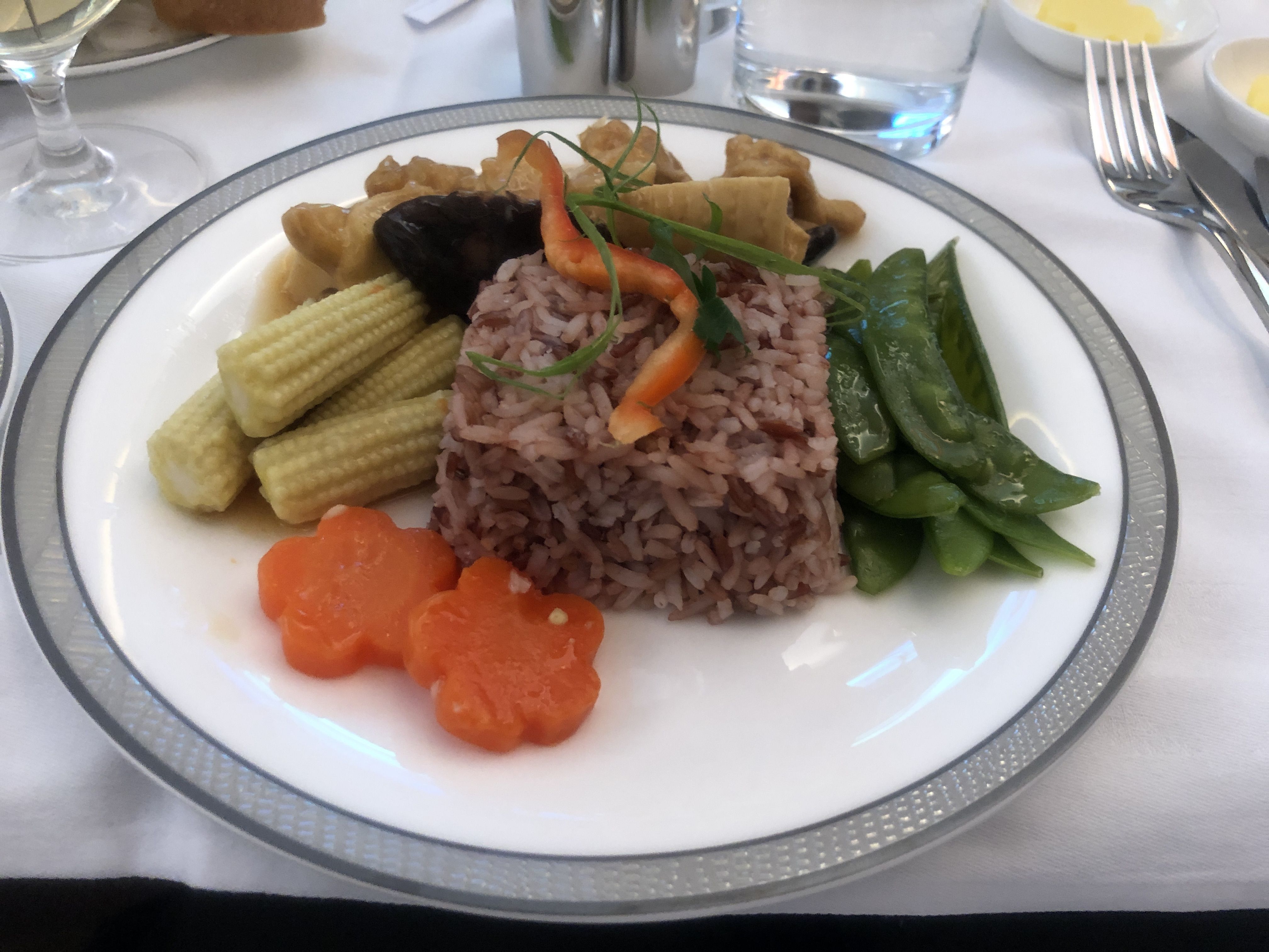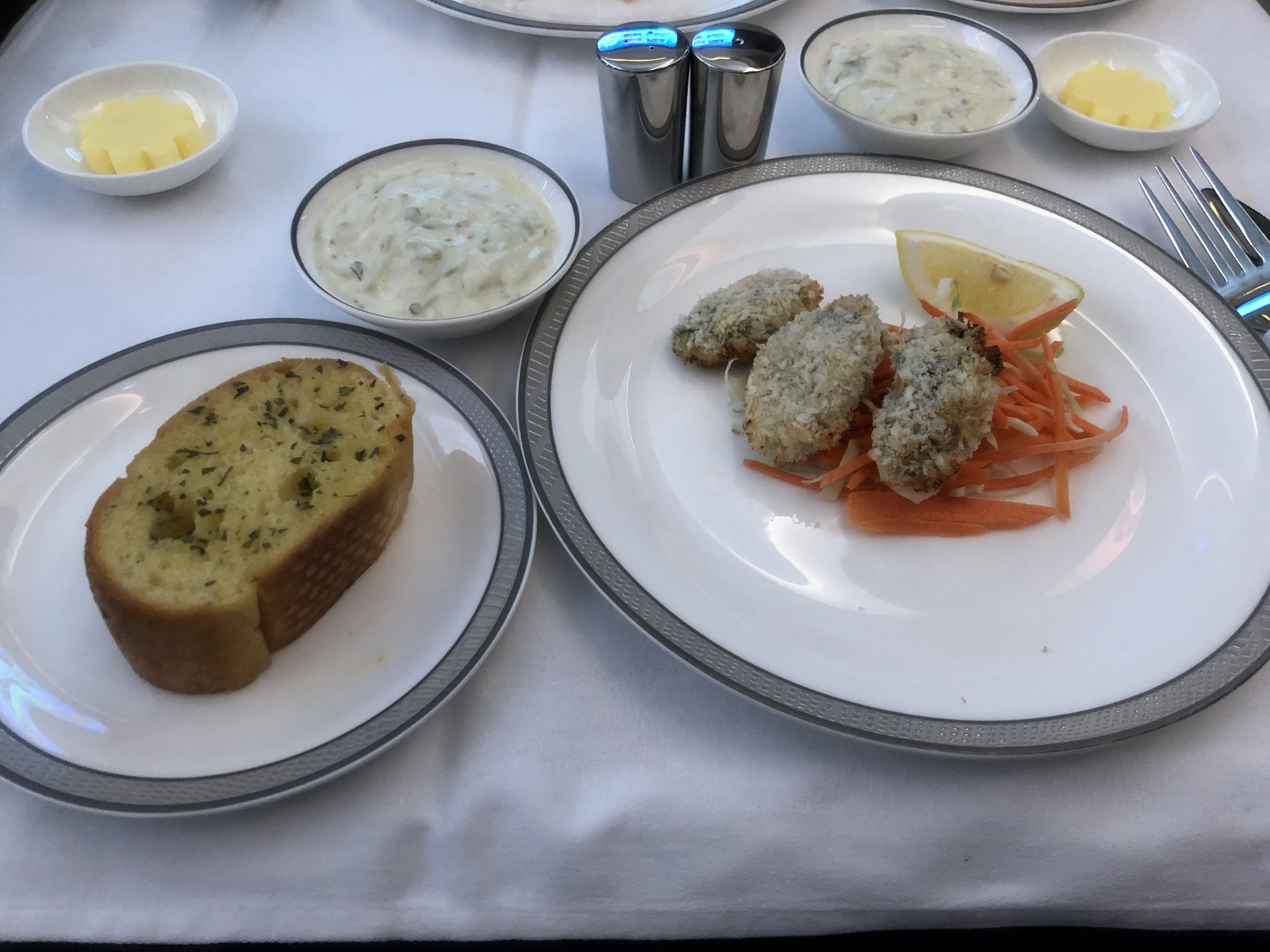 離陸後すぐにディナーが始まった、、、