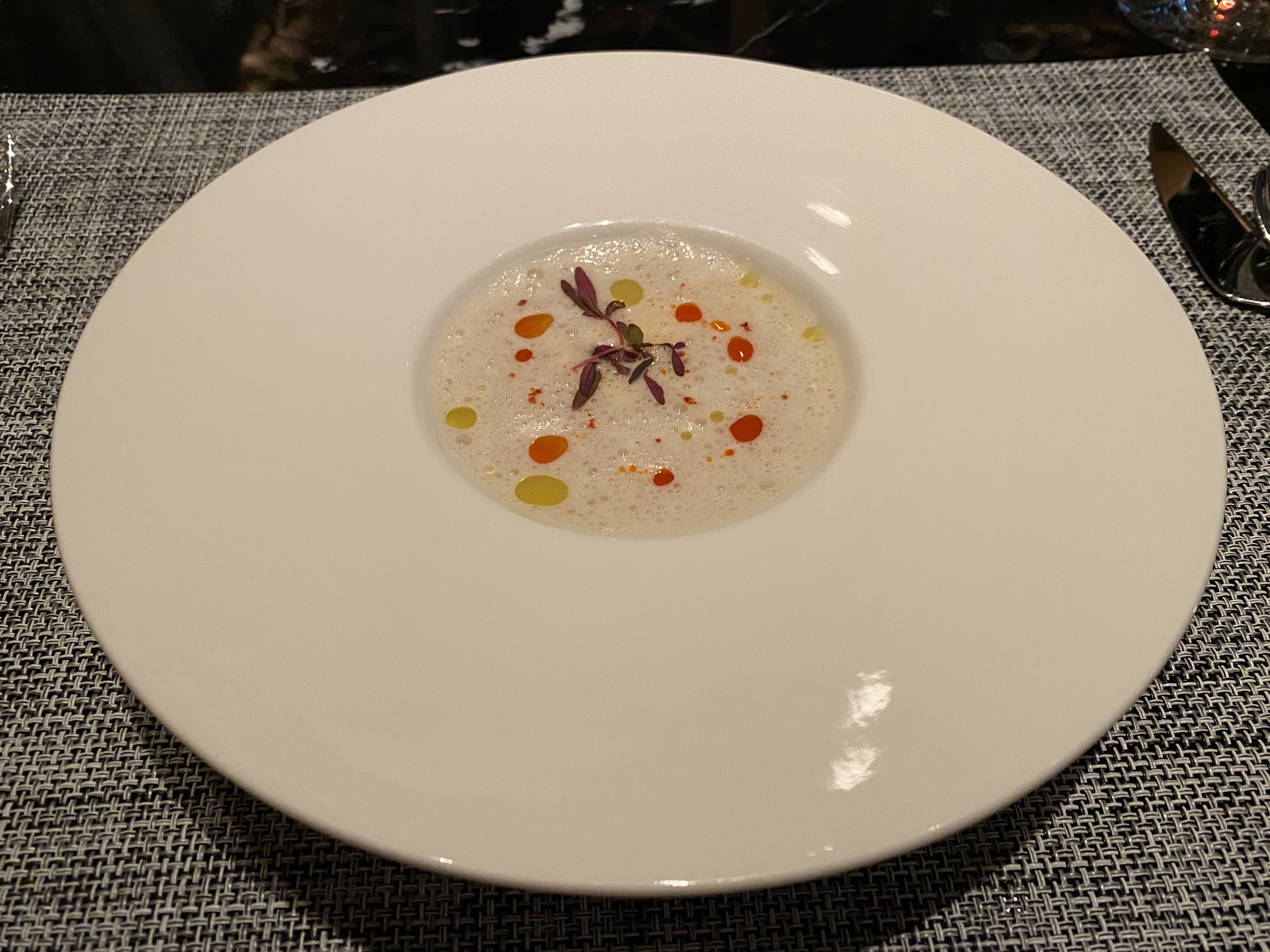 料理はシェフおまかせコースにした!なにが出てくるか楽しみだ