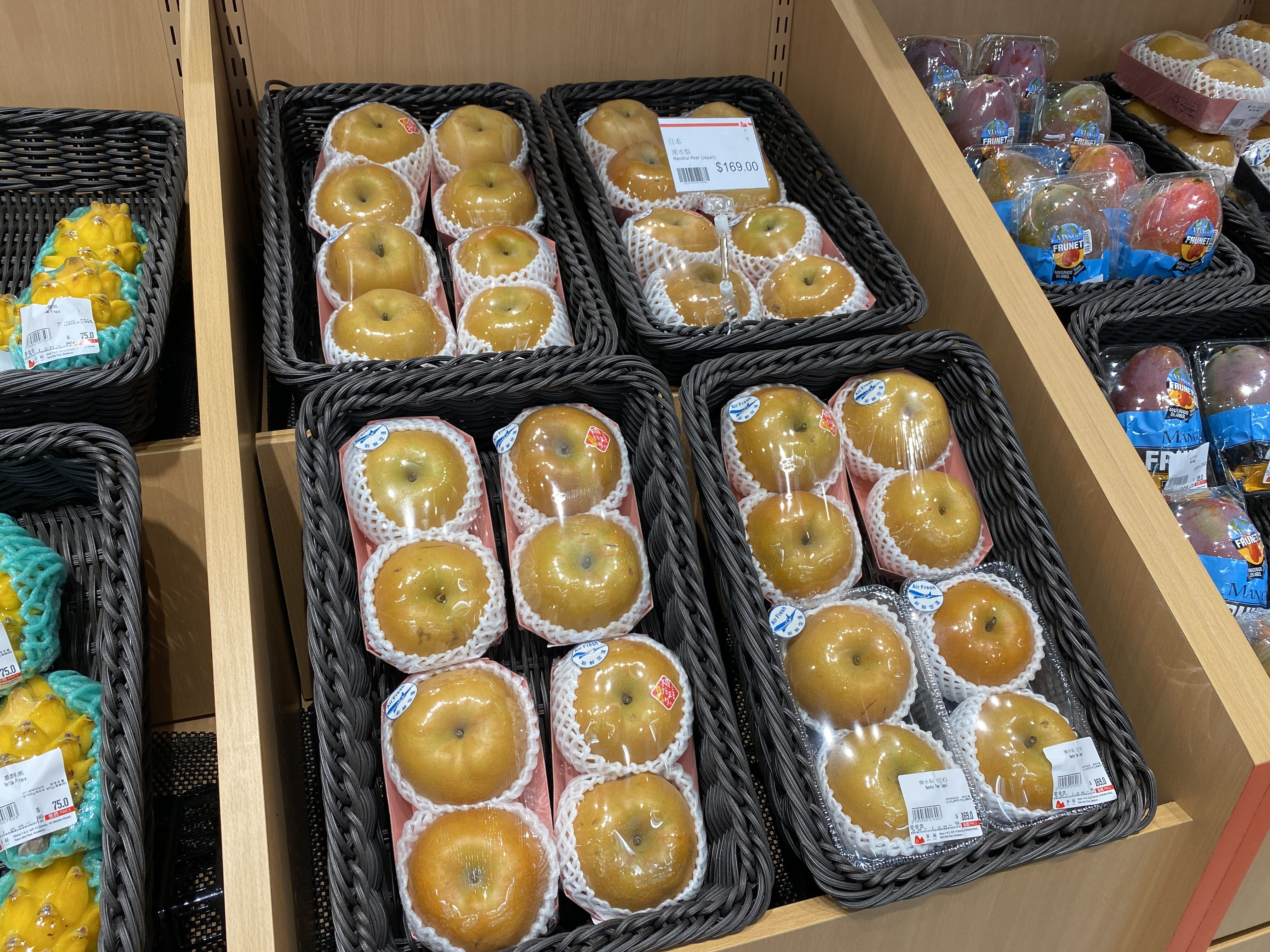 季節の梨もたくさん並べてあった、、