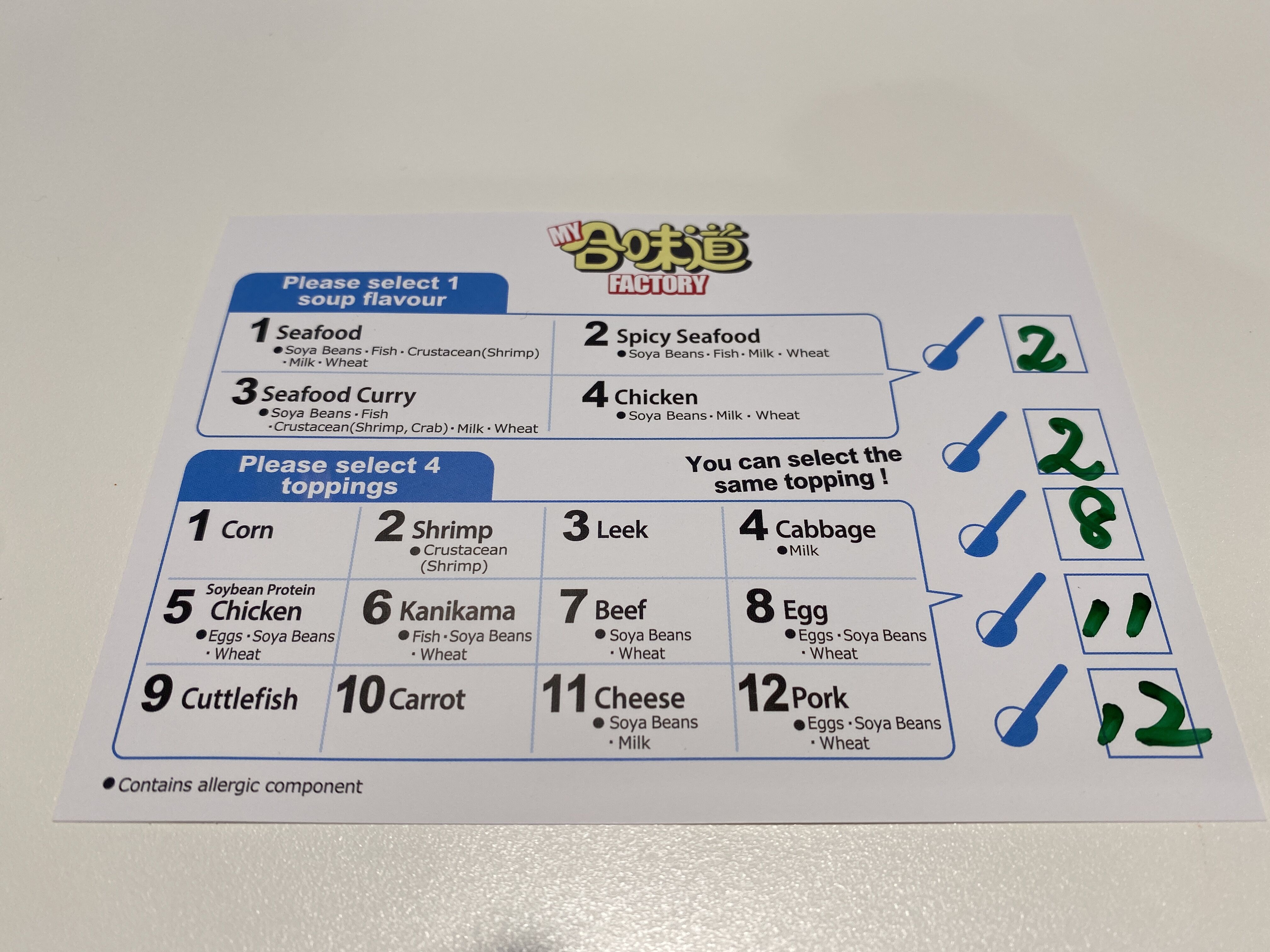 次はトッピングです〜シートに書いたように入れてくれます