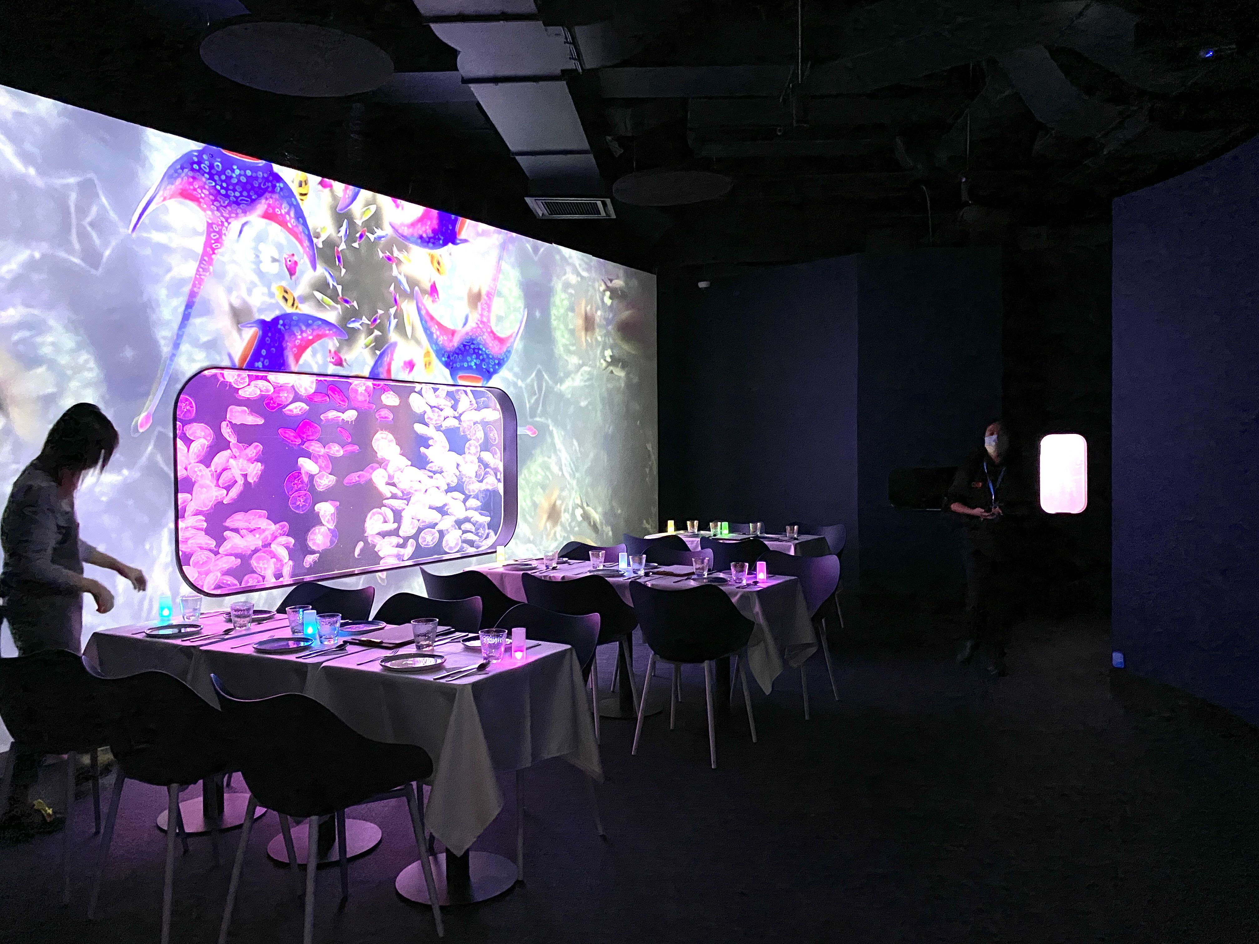 まあ、子供とクラゲを見ながら楽しく食事するか
