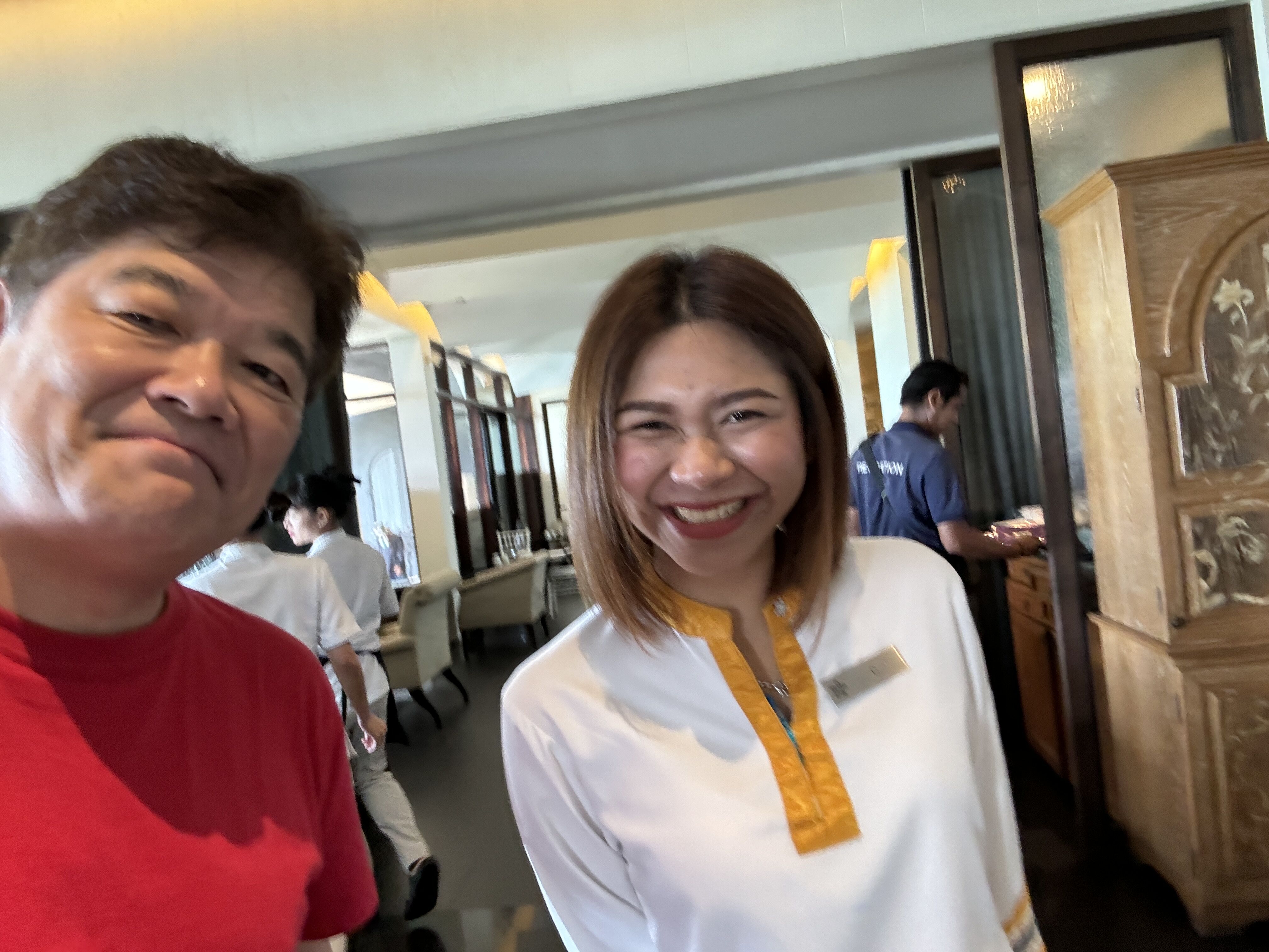 タイ人は可愛い娘が多い海を眺めながら優雅なブレックファーストです😀