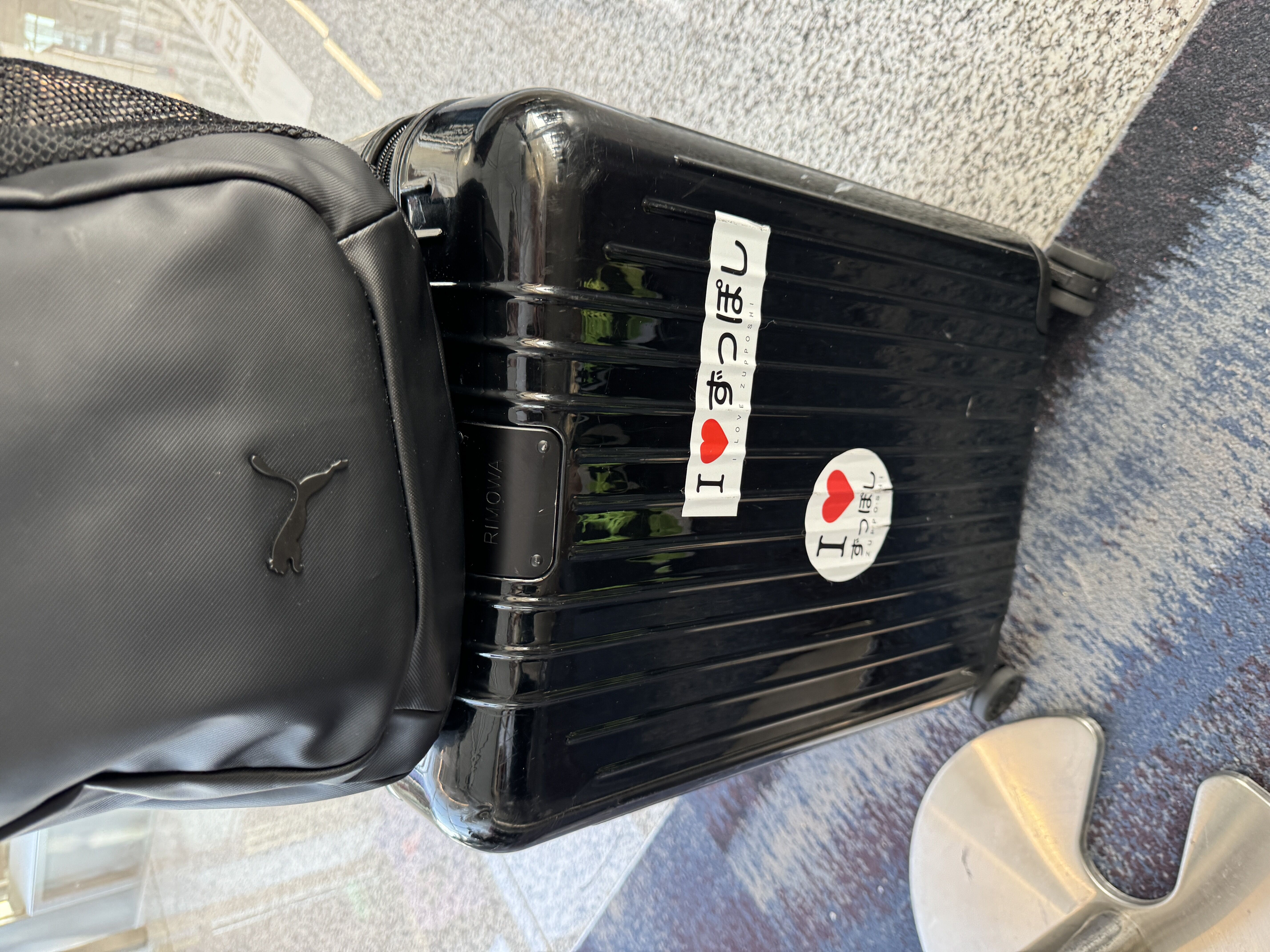 スーツケースにずっぽしシールを貼っているのは