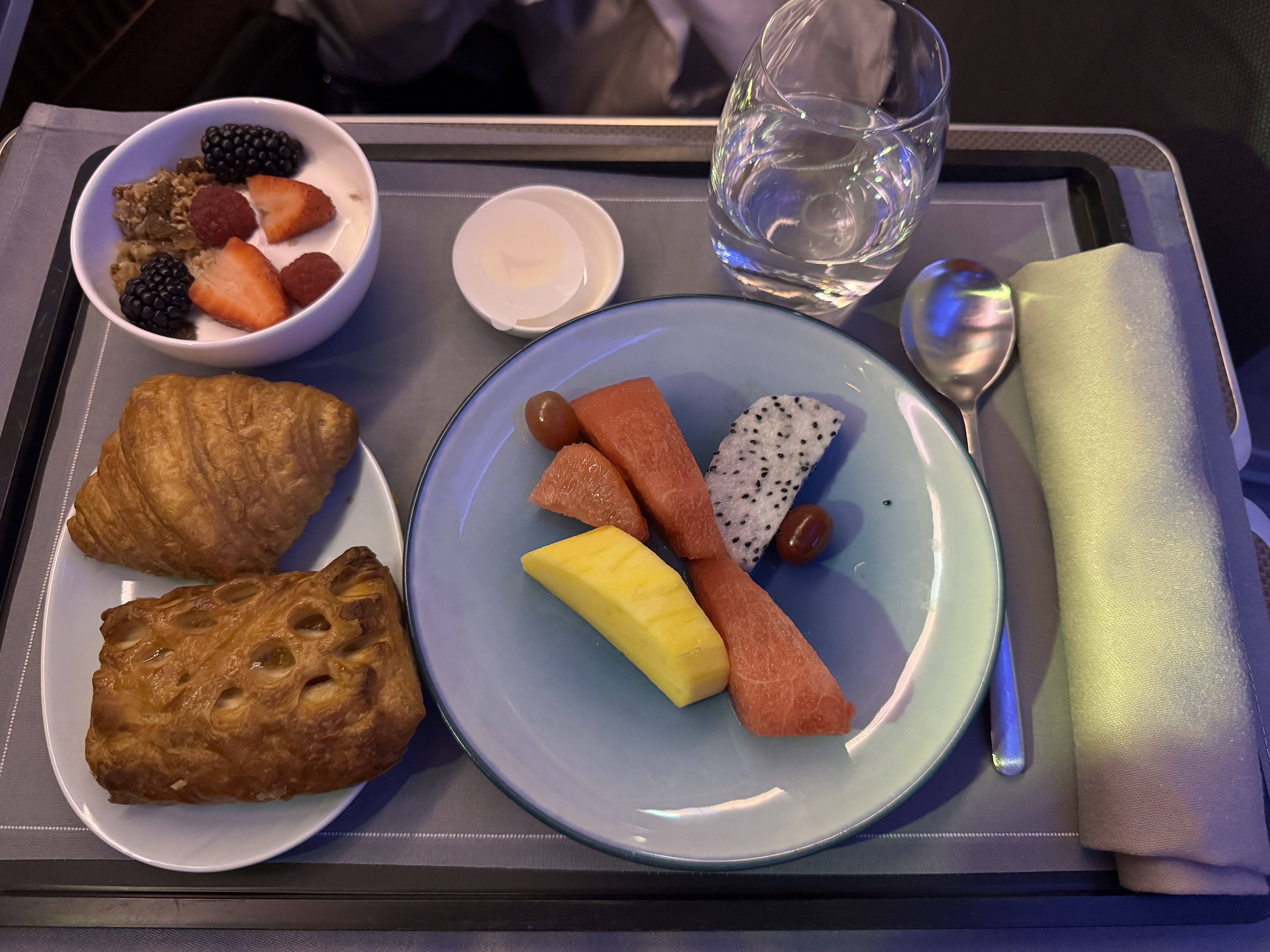 香港着陸🛬に1時間半前に朝食がサーブされます🍽️