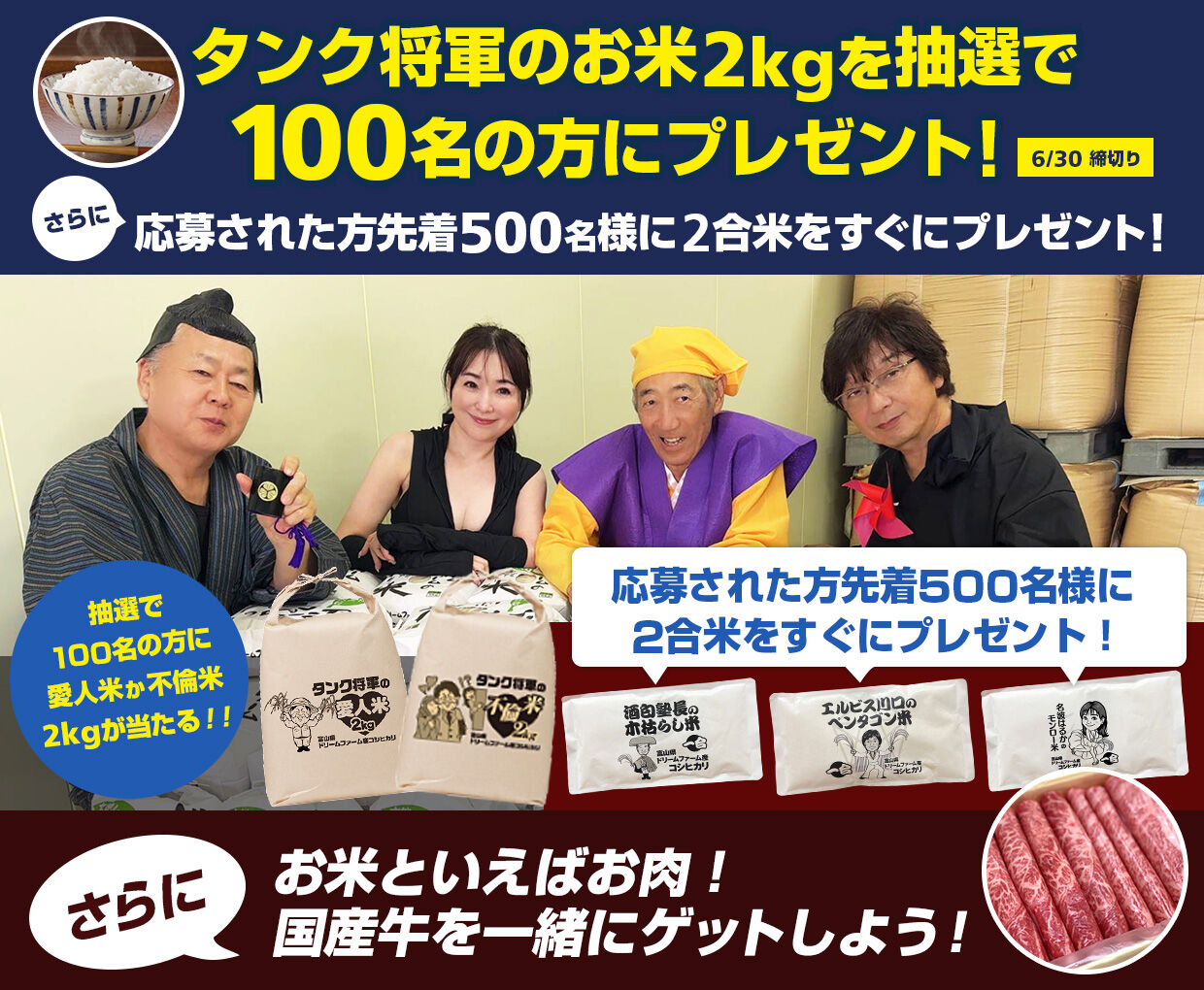 タンク将軍のお米2キロを100名様にプレゼント(抽選)