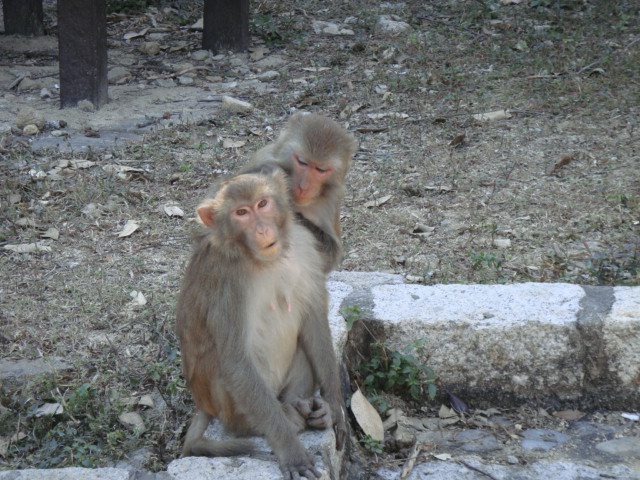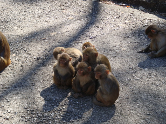 その先には、野ザルが、多数出現してきた。可愛い子ザル、、、そして、毛繕いをする猿たち、、