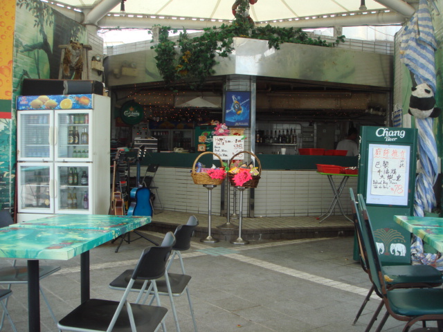 フェリー乗場の3F部分にカフェ&バー『愉景森林』(Discovery Forest)発見した。。なにやら、オープンカフェのようだ。この糞暑いのに、、、おしゃれとはほど遠い、、