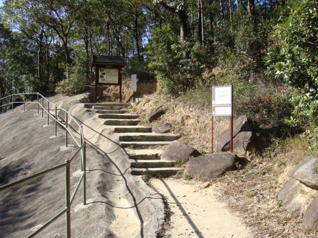 手指山からの下りはかなり急な階段だった。イッキに下りきると、4差路に出るが、ここは、右折して直進する。