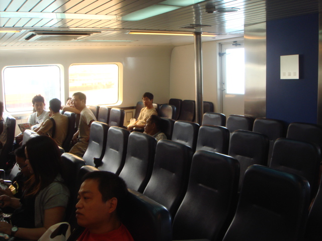快速船は、1Fと2Fに座席があるが、1Fのほうが冷房の効きが強い。