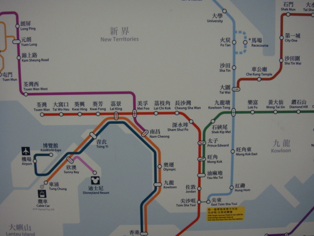 MTRに乗車して、路線図を見た、。 黄大仙から荃灣まで、相当歩いたんだなあと実感した。、
