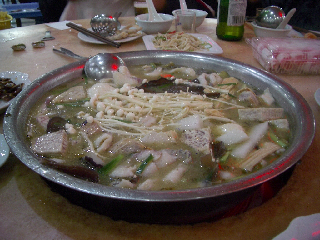 香港では、鍋は汁だけで、具はあとから入れるが、ここ福州では、ある程度、鍋に具が入った状態でくる。