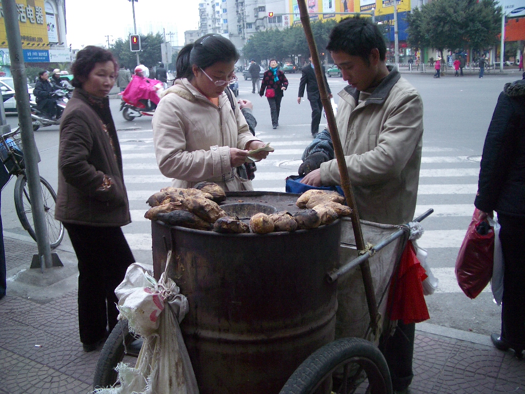 そして、さらに歩くと、道端で、屋台を見つけた。焼き芋屋や、なんだかわけのわからない食べ物を販売していた。