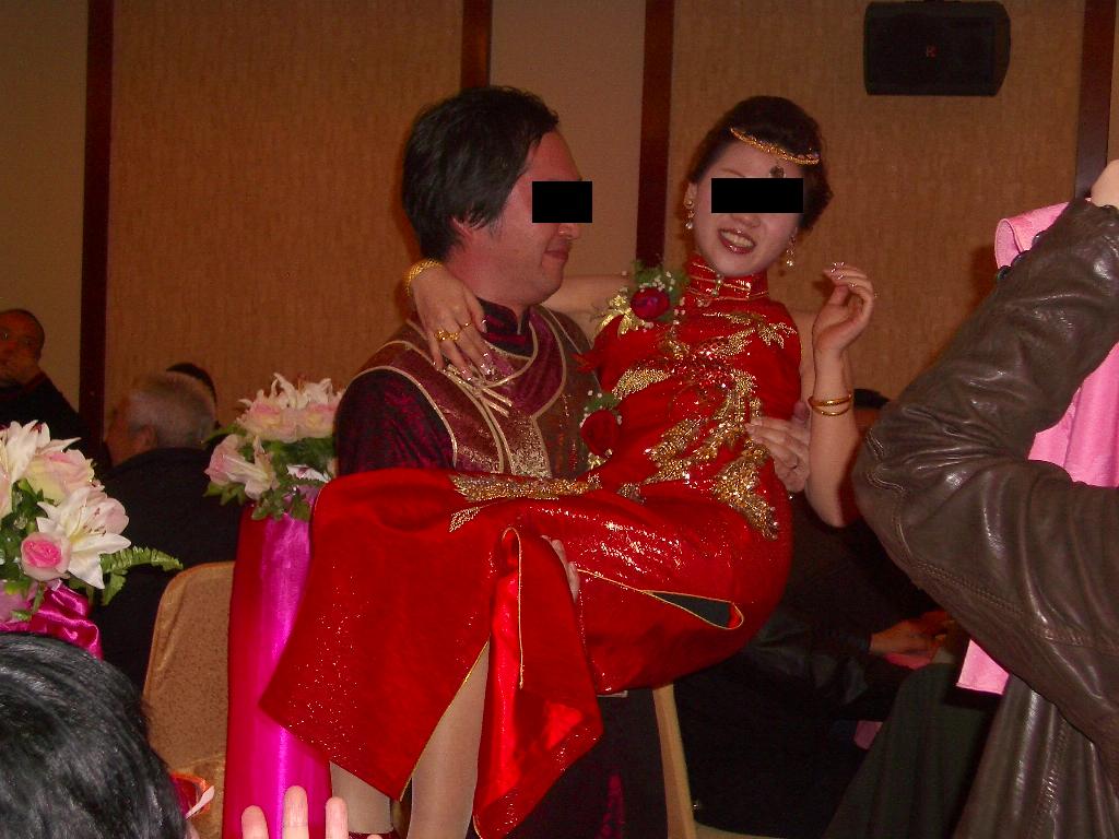 新郎は、毎晩のオツトメのため、ぎっくり腰だったが、勢いで新婦を持ち上げて会場を歩きまわっていた。。