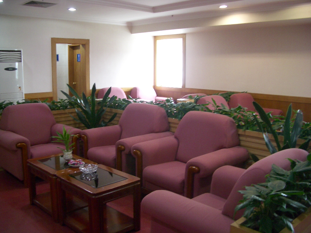 エスカレーターをあがると、小さなラウンジに一人の従業員、お茶か水を無料で1杯サービスされる。