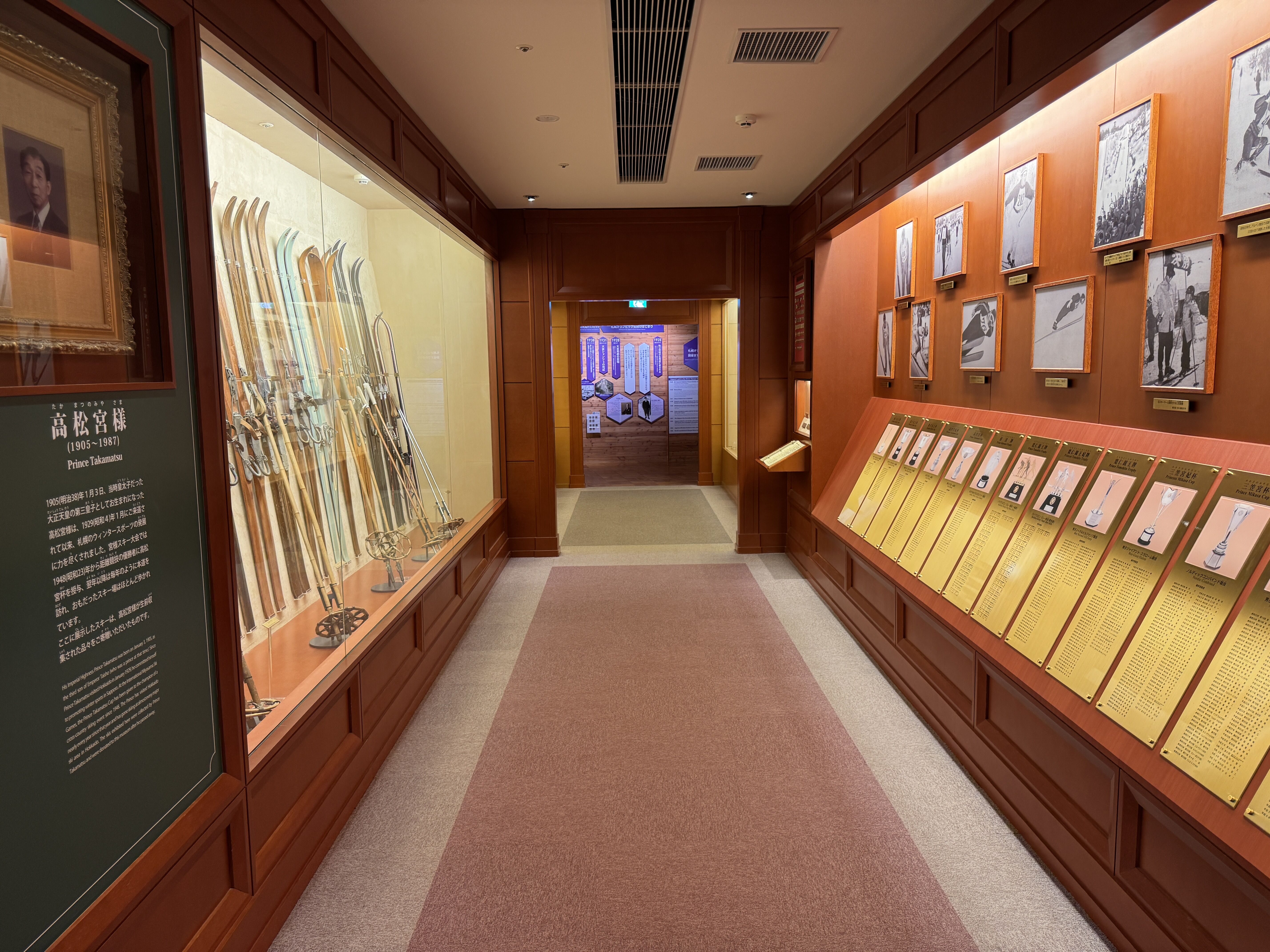 皇族(高松宮など)が利用した昔のスキー板などの展示も興味深い