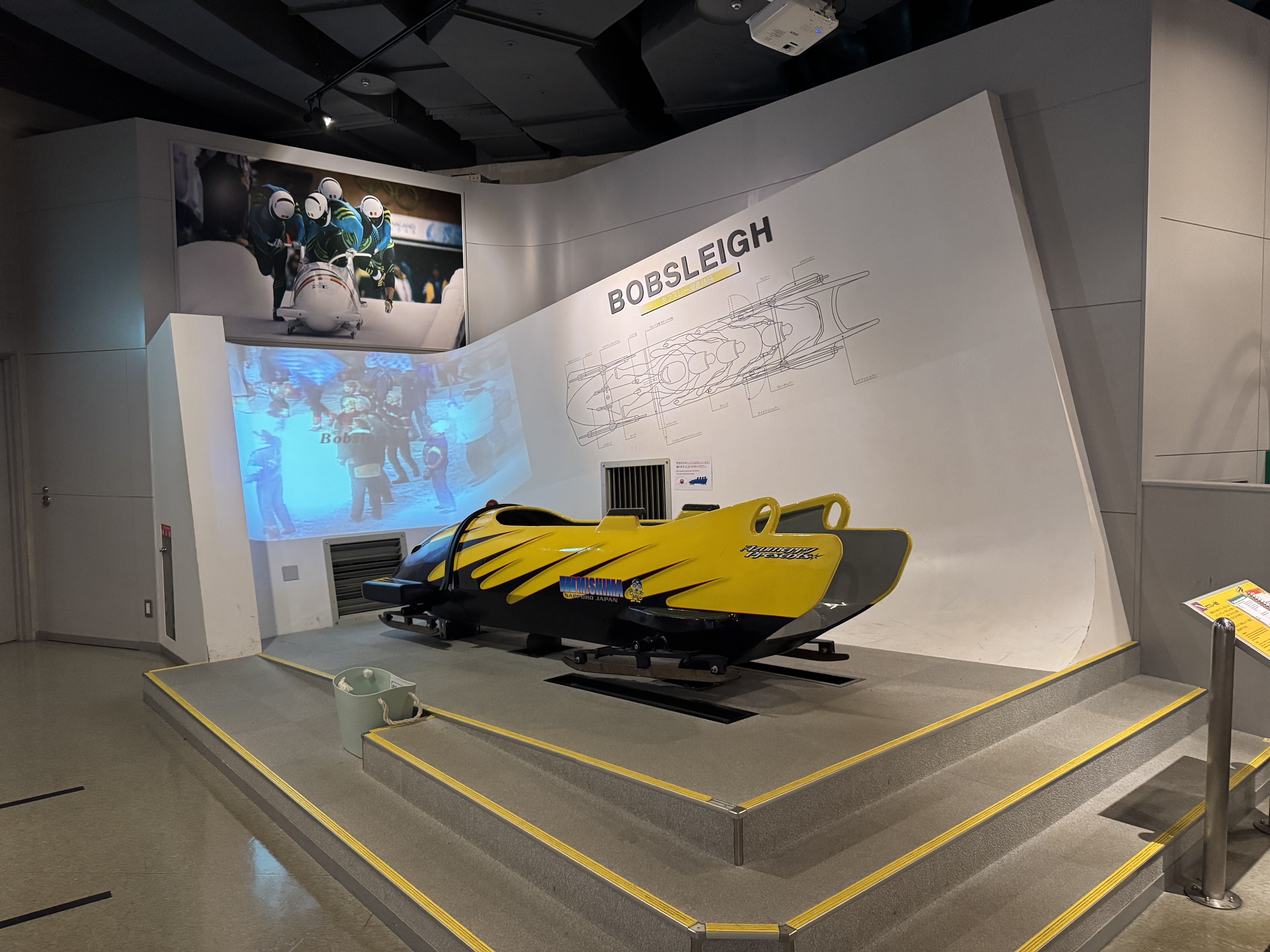 実物大の4人乗りボブスレーに乗り込んで、選手視点で時速130kmを体感。体重移動でボブスレーを左右に動かして、コーナーを駆け抜ける