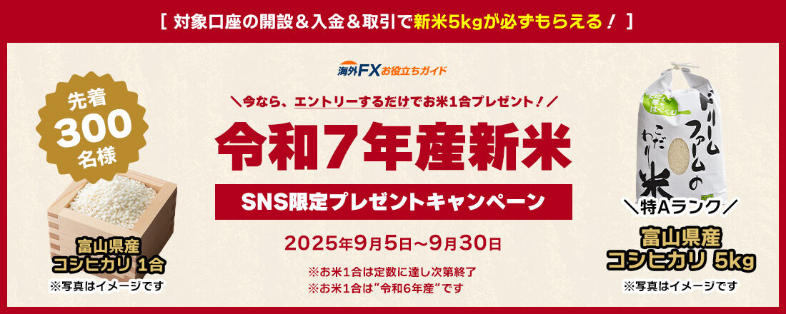 FXの口座開設でさらに新米コシヒカリ5キロが必ずゲット😄