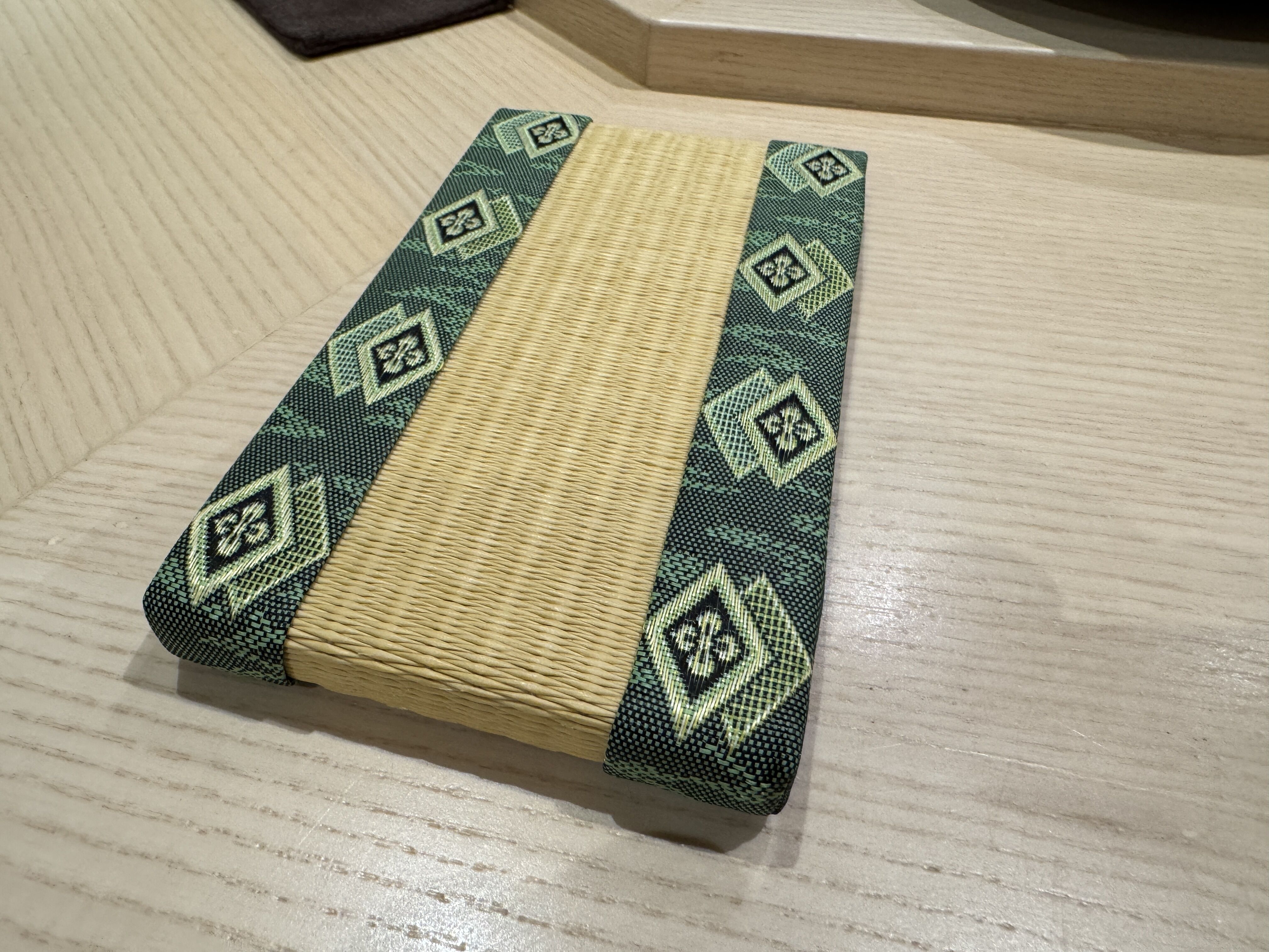 テーブルには、畳のスマホ置きが常備されています