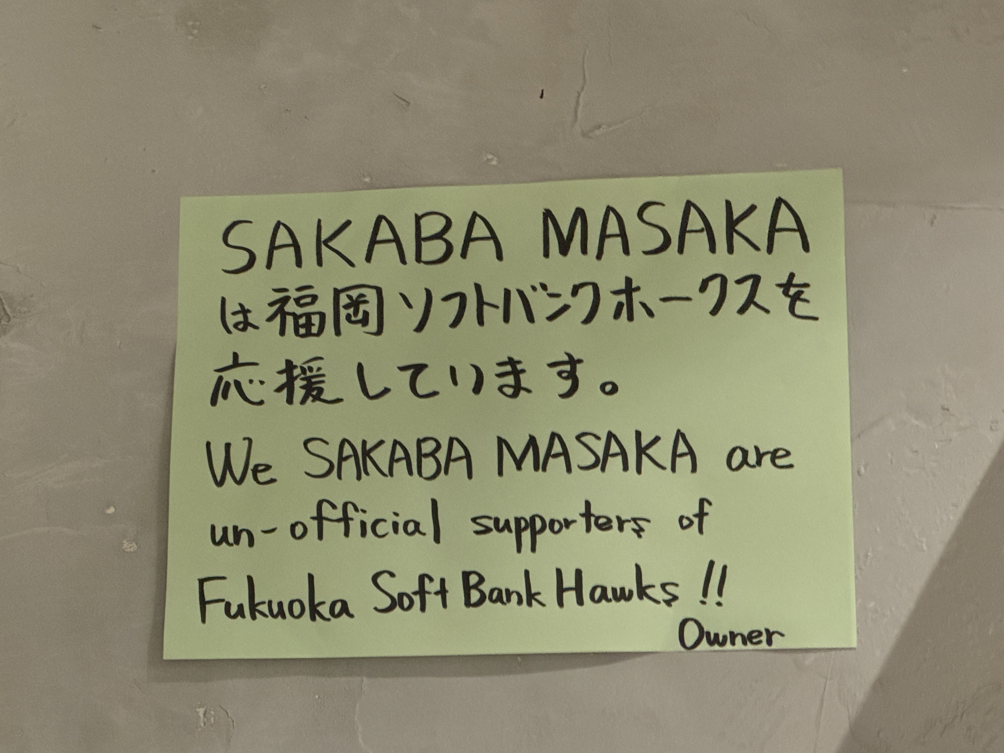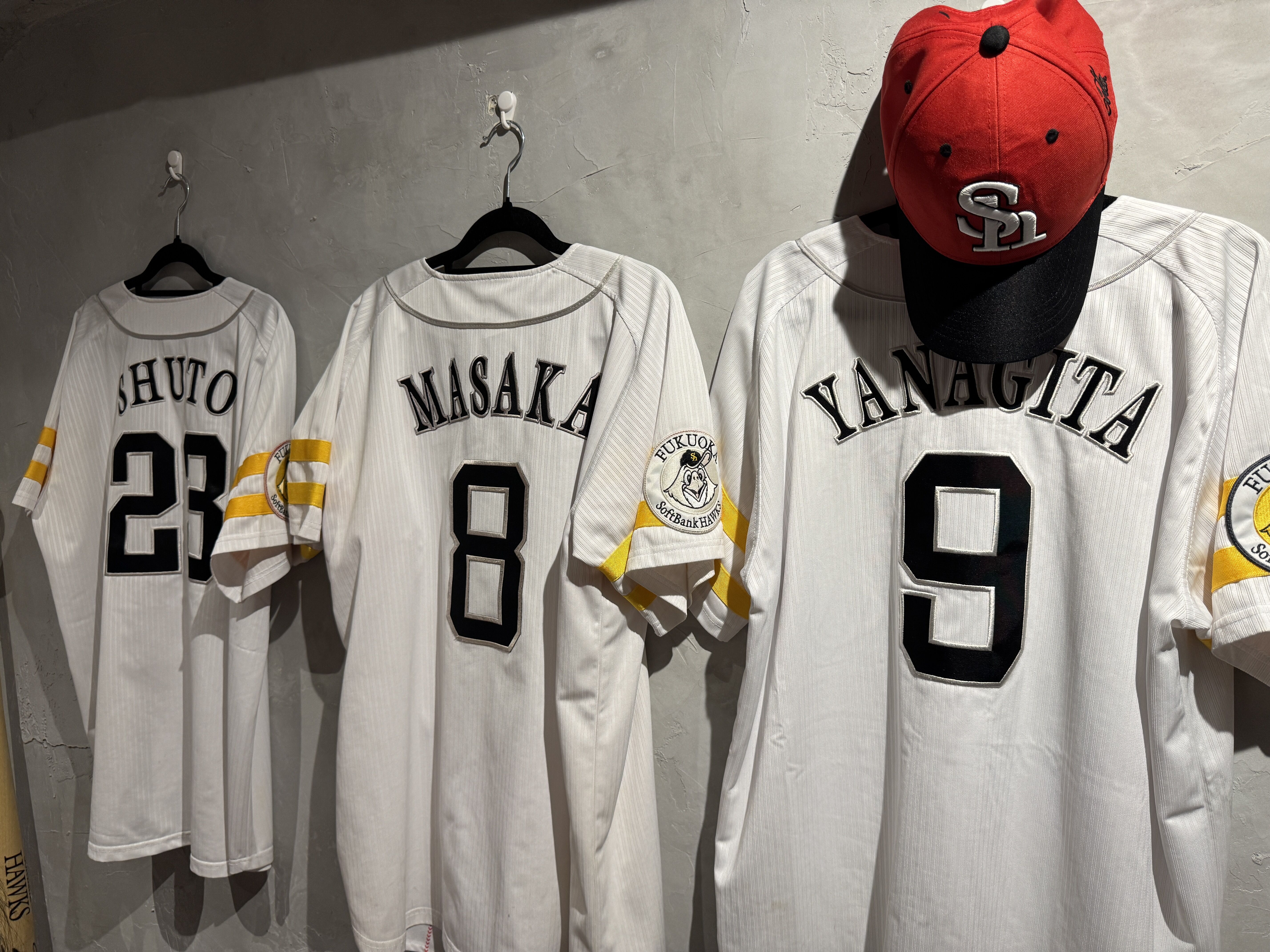 壁にやたら福岡ソフトバンクのユニフォームとかが飾られている