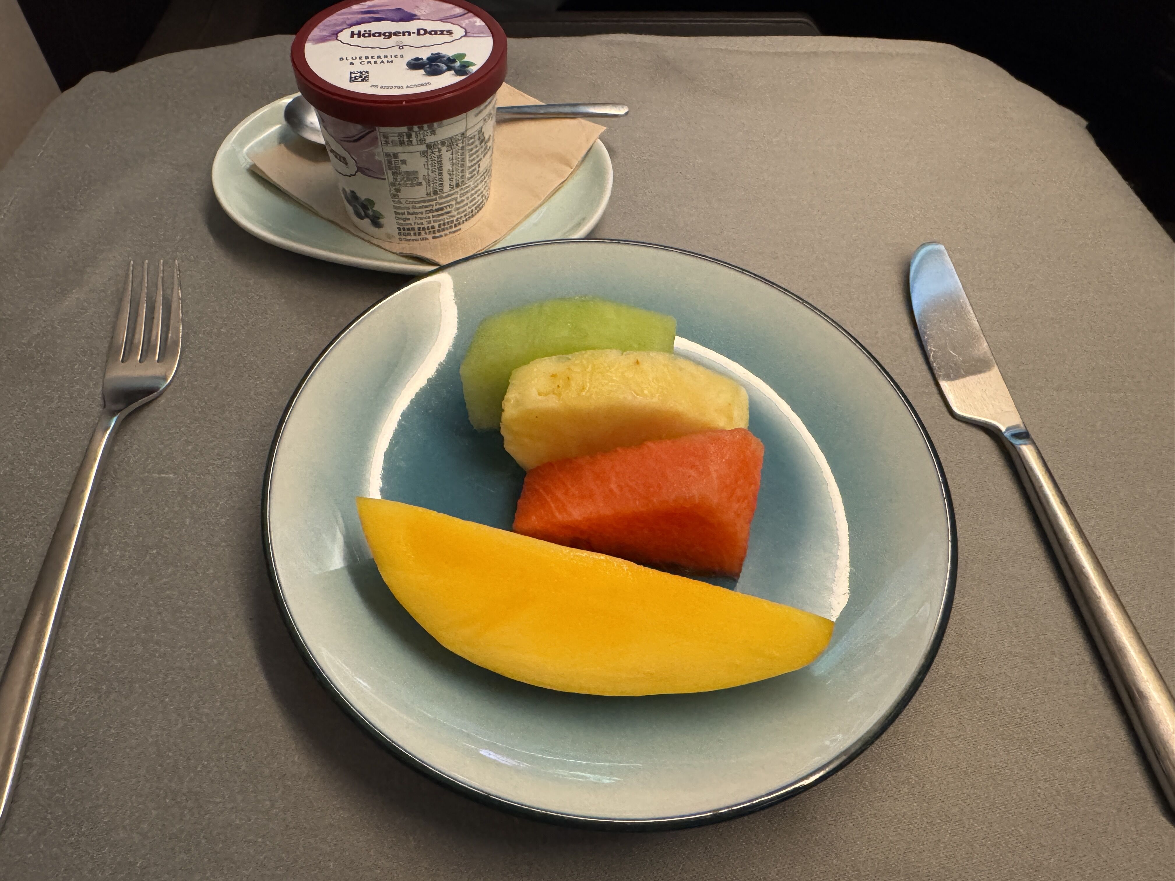 飛び立つ🛫と恐怖のキャセイ機内食の時間になるのだが