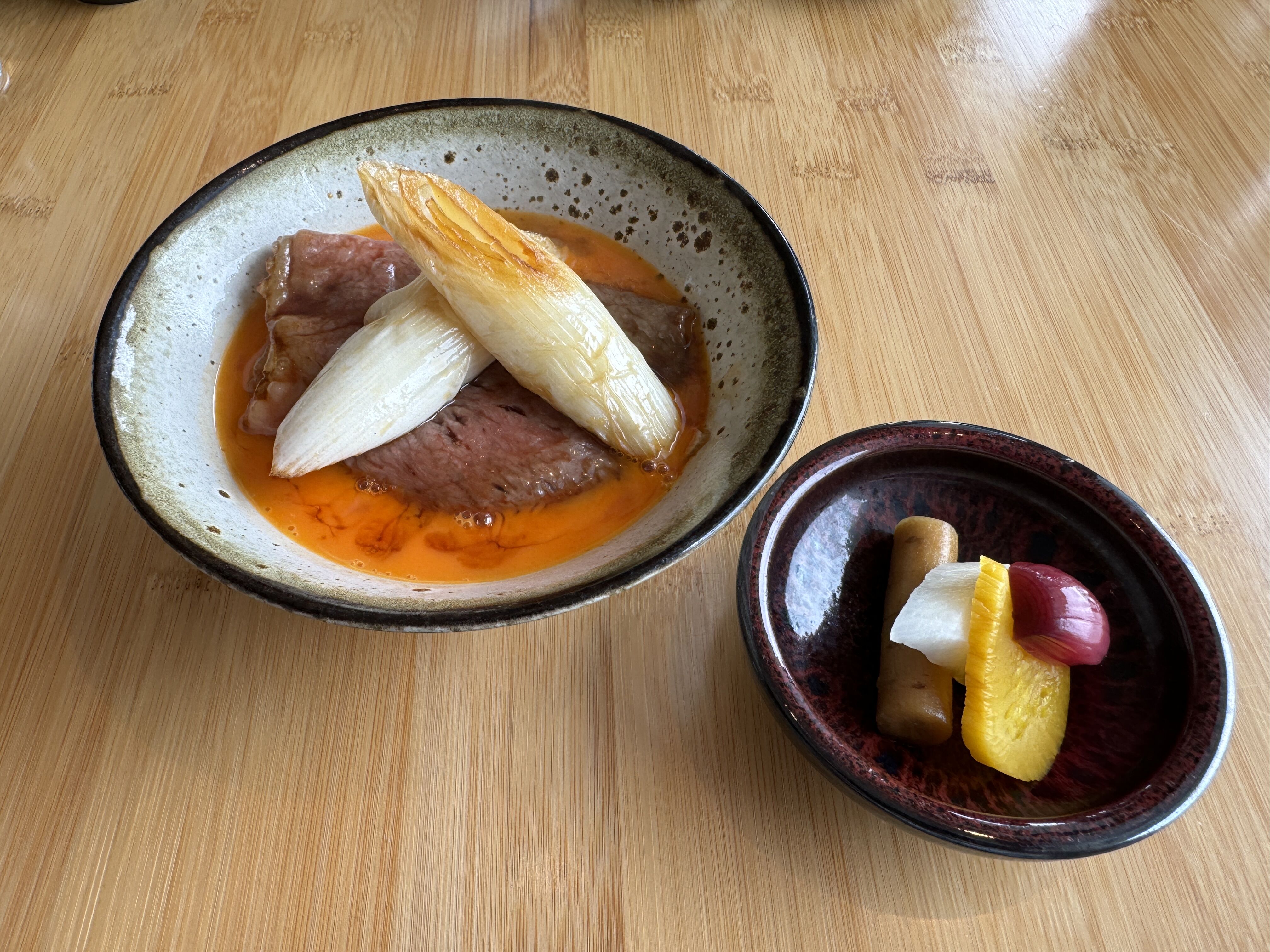 和牛と雲丹のご飯 味噌汁と香の物