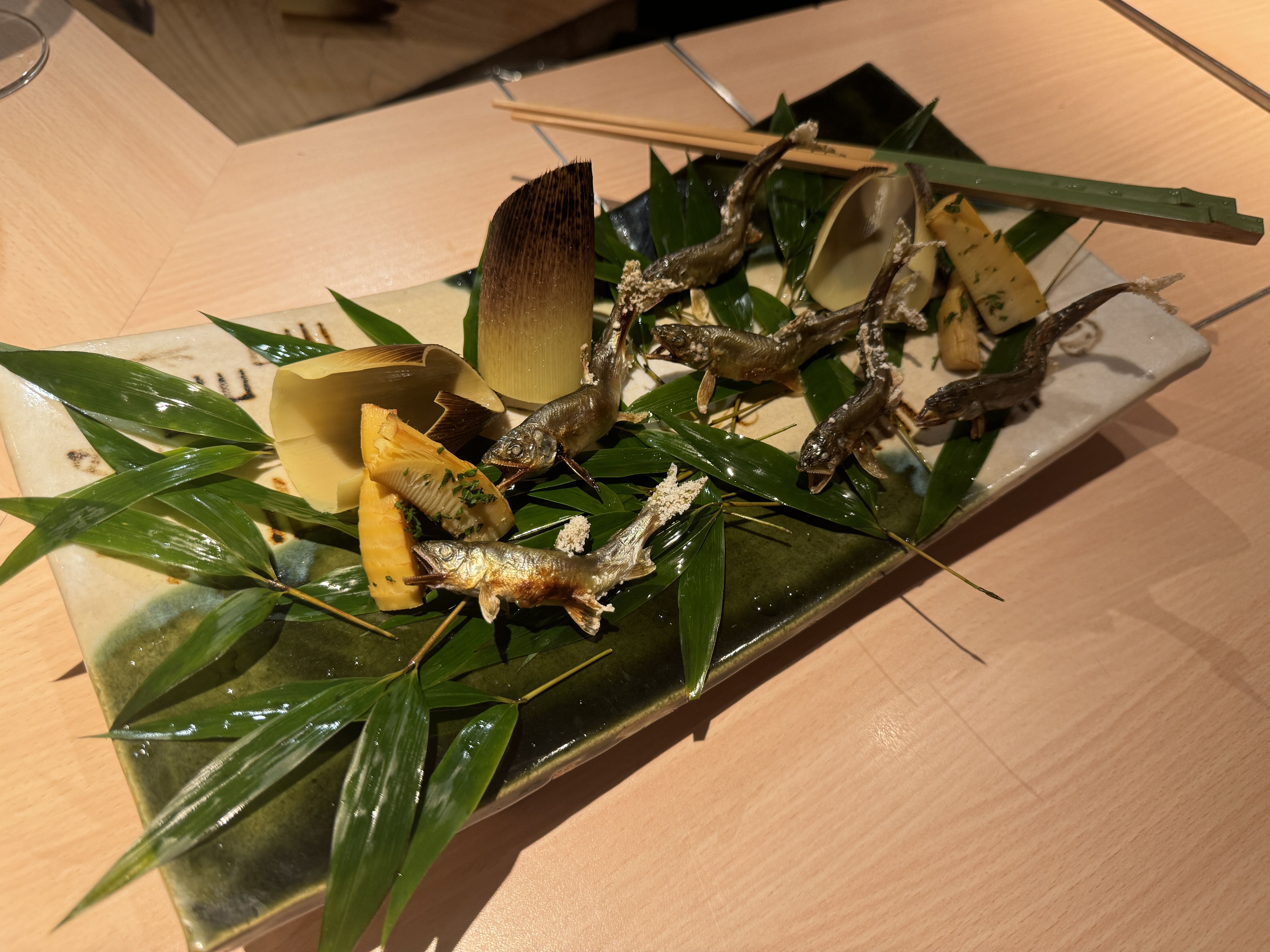 先ほどの稚鮎とたけのこです(炭焼)