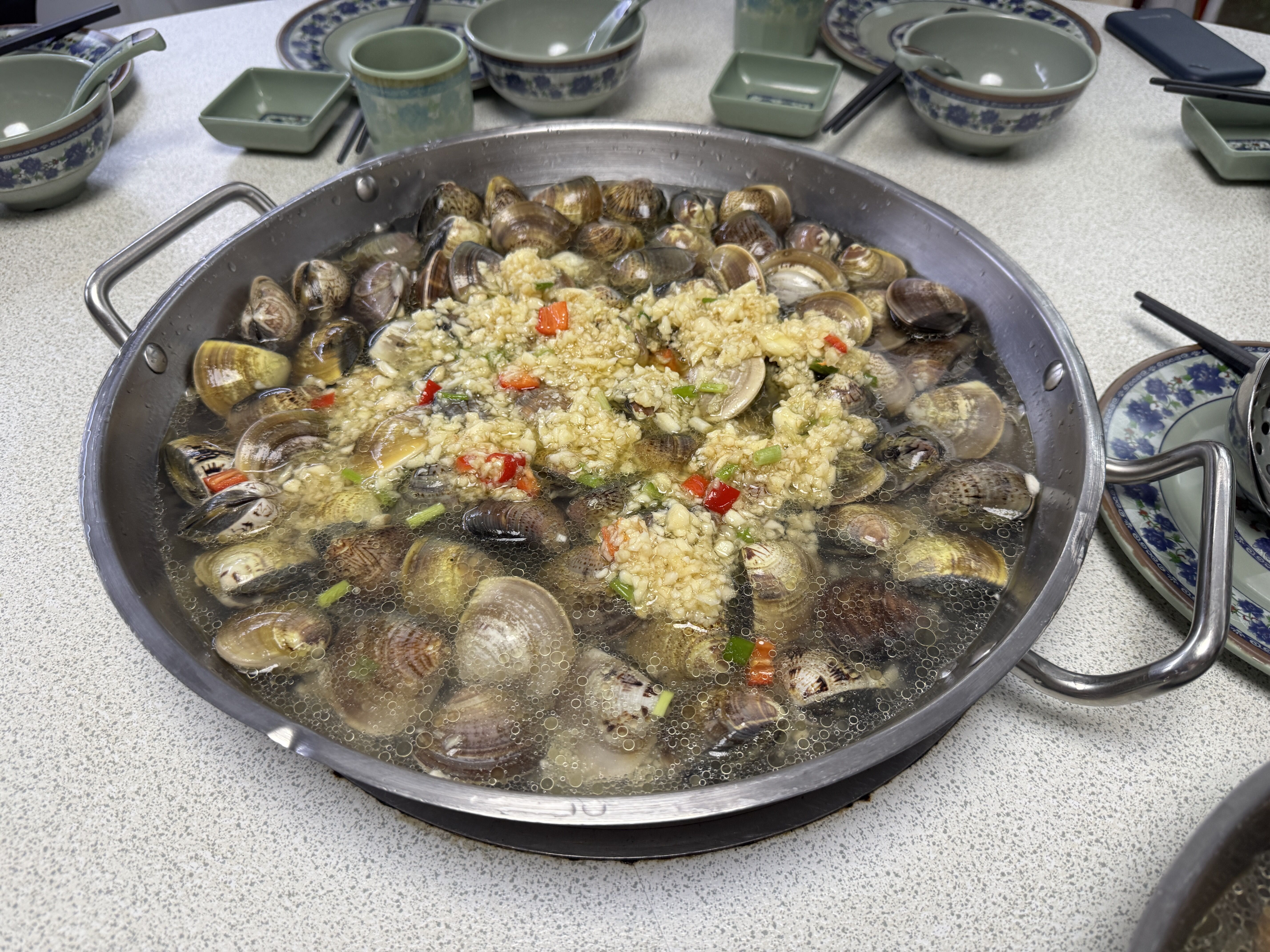 マカオ あさり鍋 火鍋専門店「贏到粥」Yeng Dou Jok ニンニクたっぷりです!