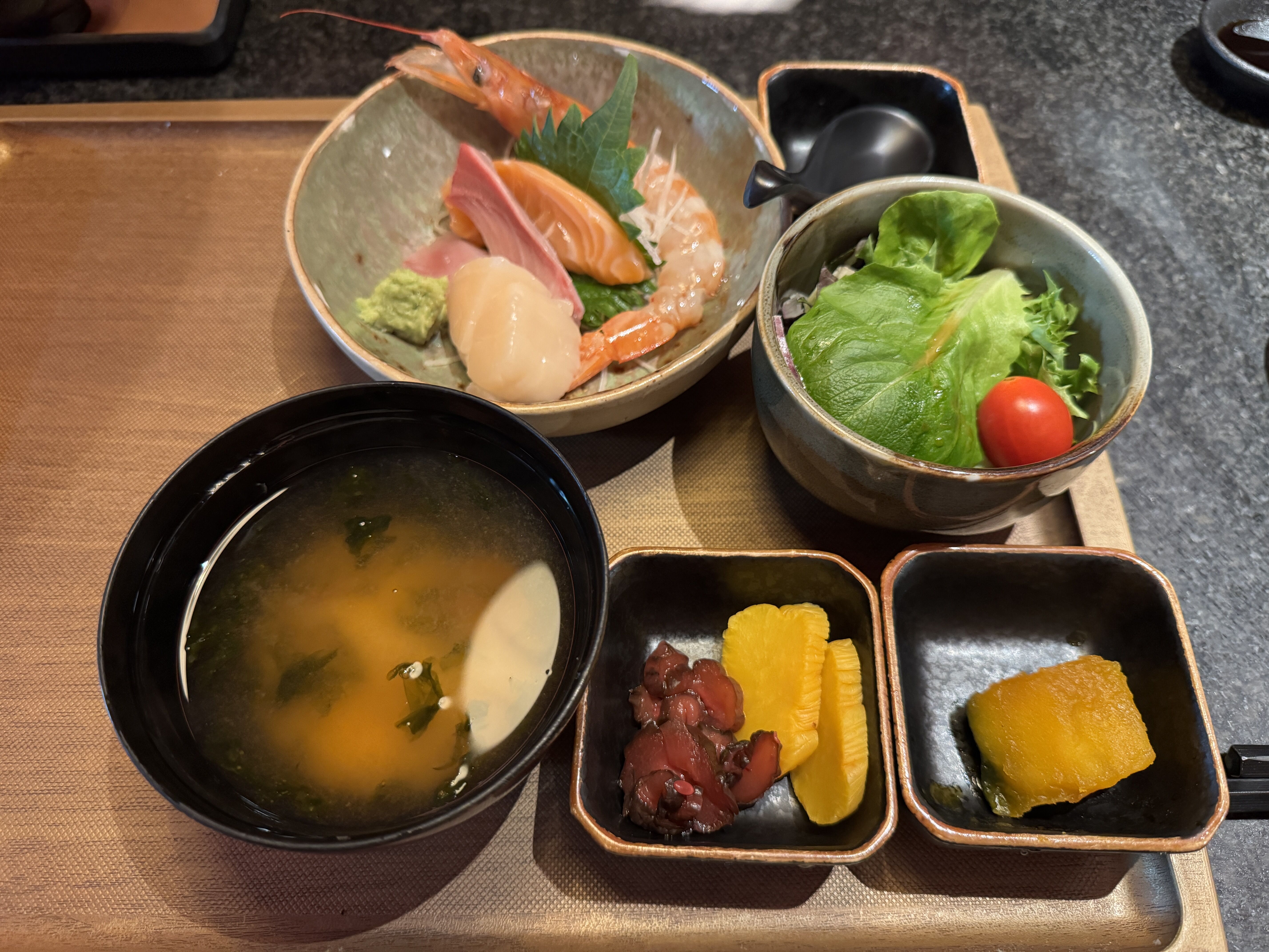 私は特選刺身、カラスカレイ西京焼定食148HK